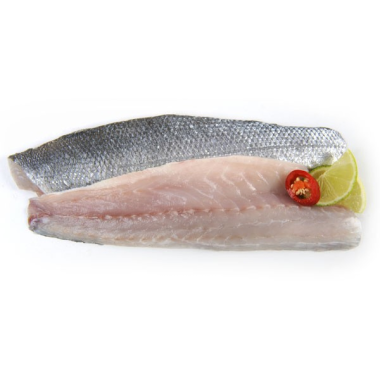 Farkassügér (branzino/tengeri süllő) filé, 120/160 g/db, 5 kg/krt., hozzáadott vízzel, 25% védő jégréteggel, fagyasztott